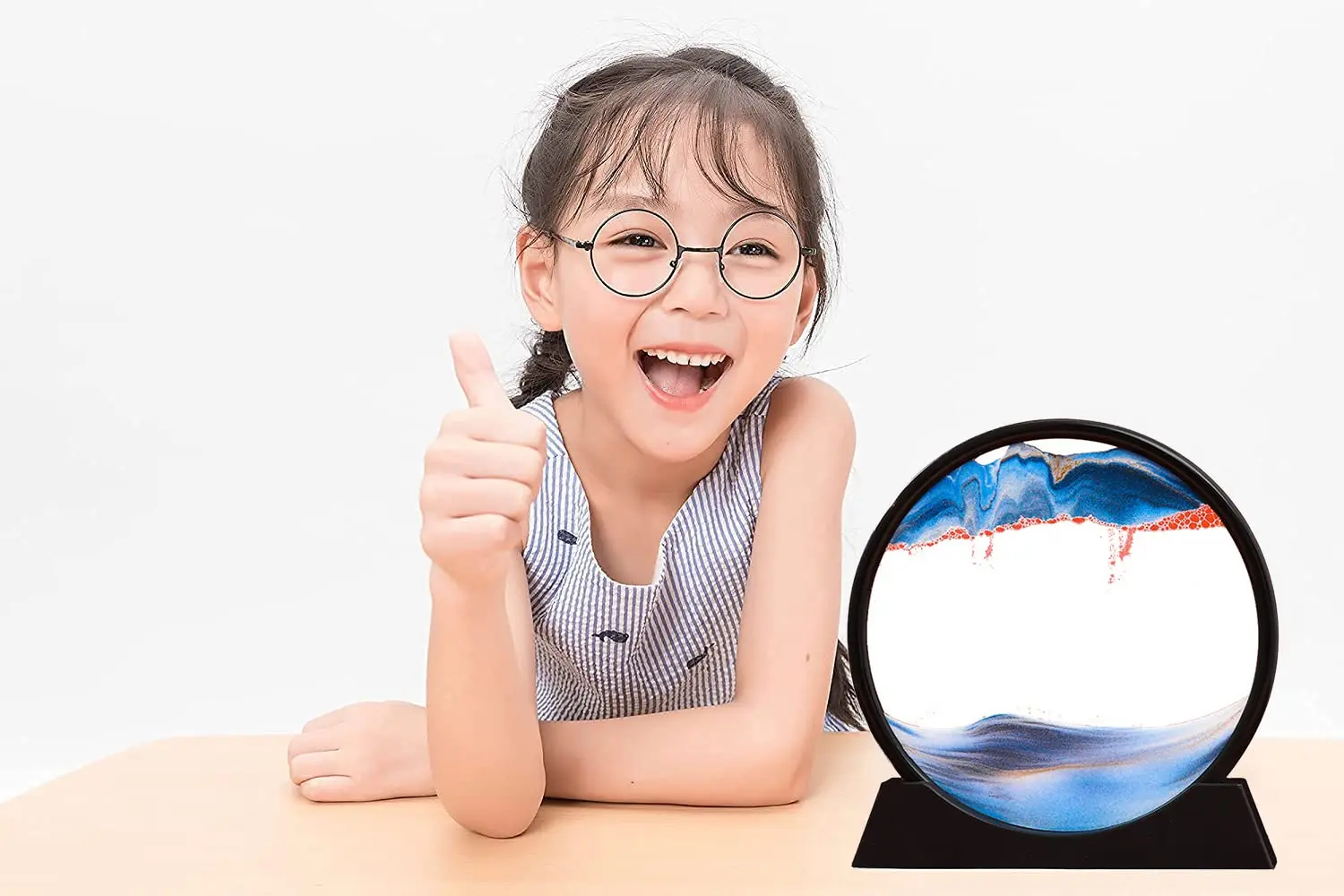 3D Dynamic Sand Art Liquid Motion Moving Sand Art Picture Round Glass Deep Sea Sandscape Motion Display Flowing Sand Frame Adult