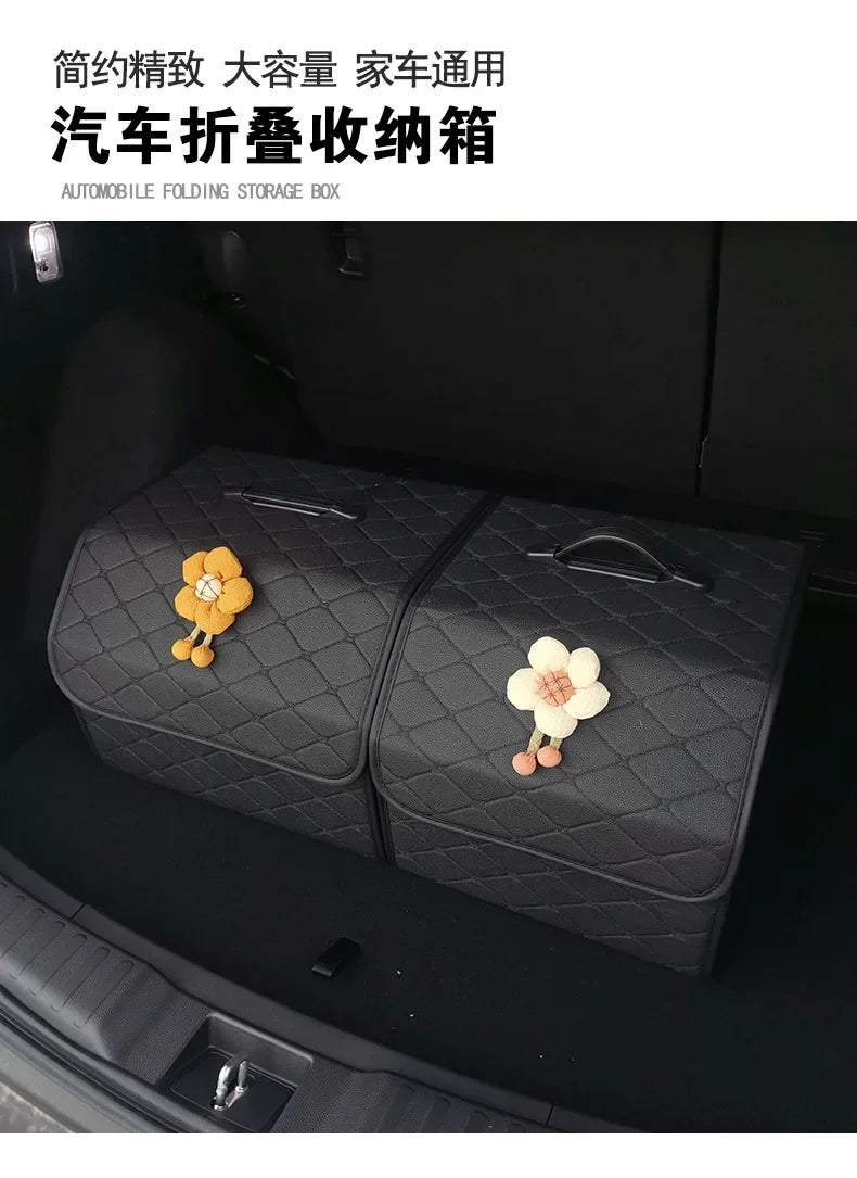 Car Trunk Organizer Box Large Capacity Auto Multiuse Tools Storage Bag Stowing Tidying Leather Folding For Emergency Storage Box