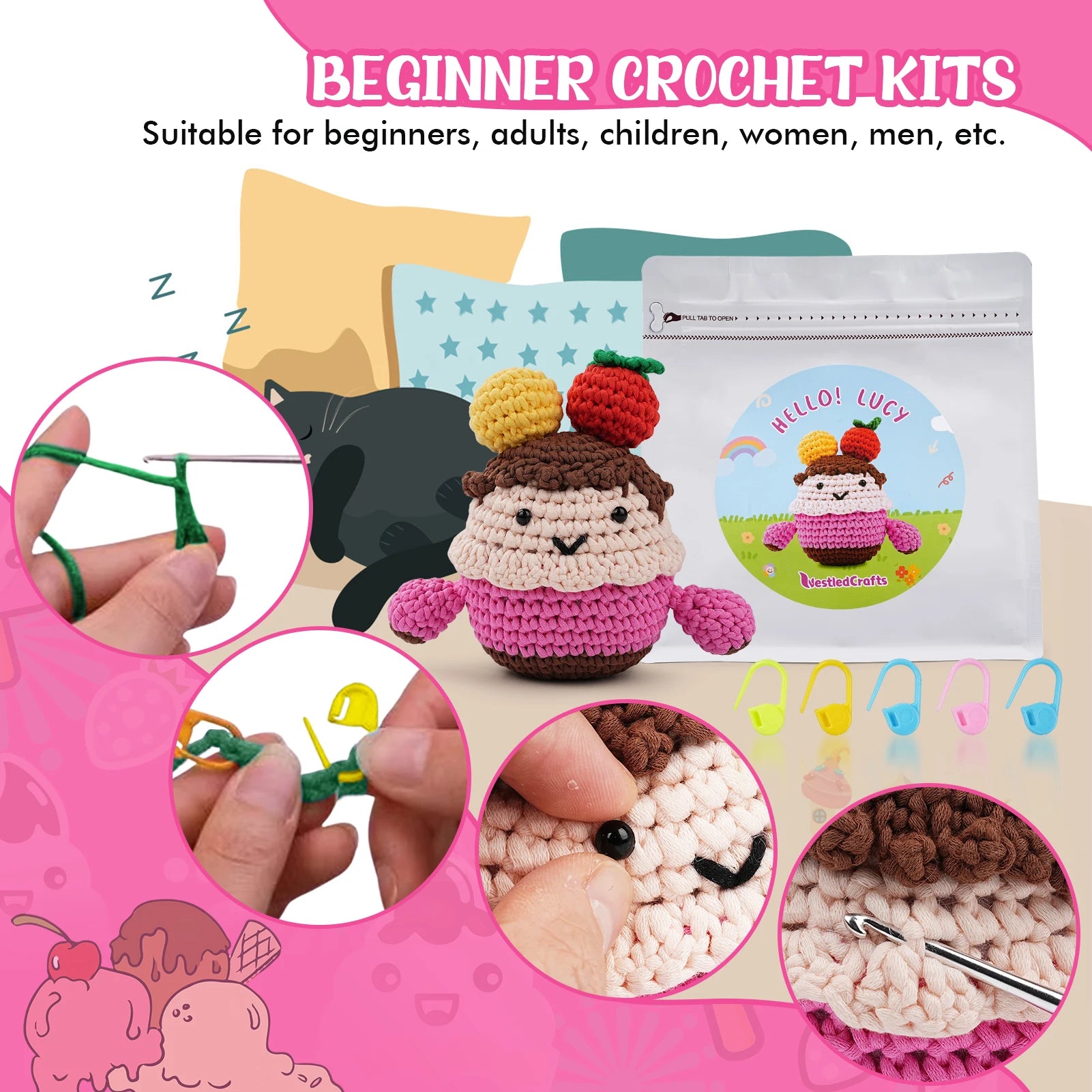 Dive into the world of crochet and enjoy a fun, creative experience that will enhance your crafting skills. Start your crochet journey today with this charming crochet kit!