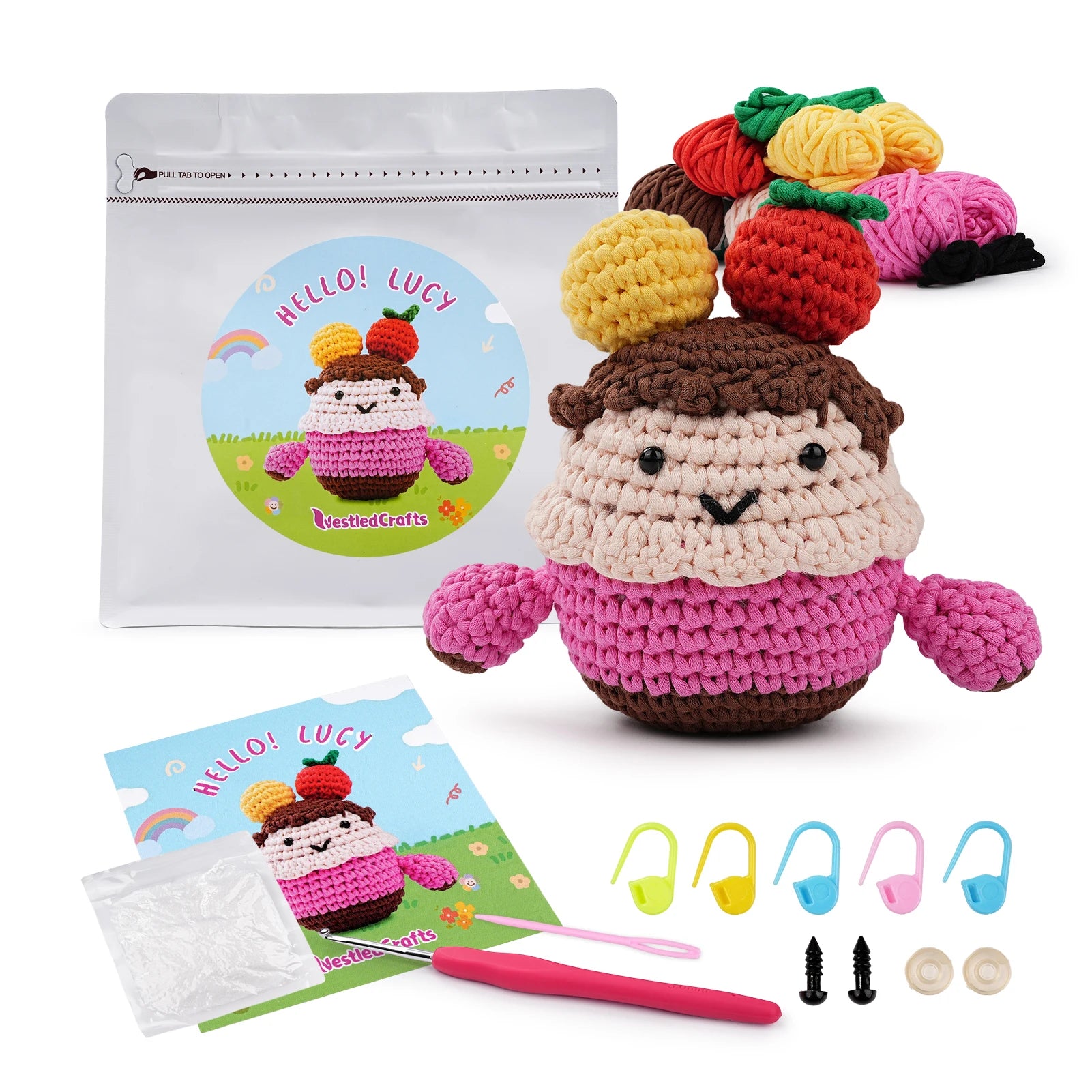 Introducing the Crochet Kit for Beginner Lucy, a delightful handcraft kit designed for those new to crocheting! This kit includes everything you need to create your very own adorable amigurumi.