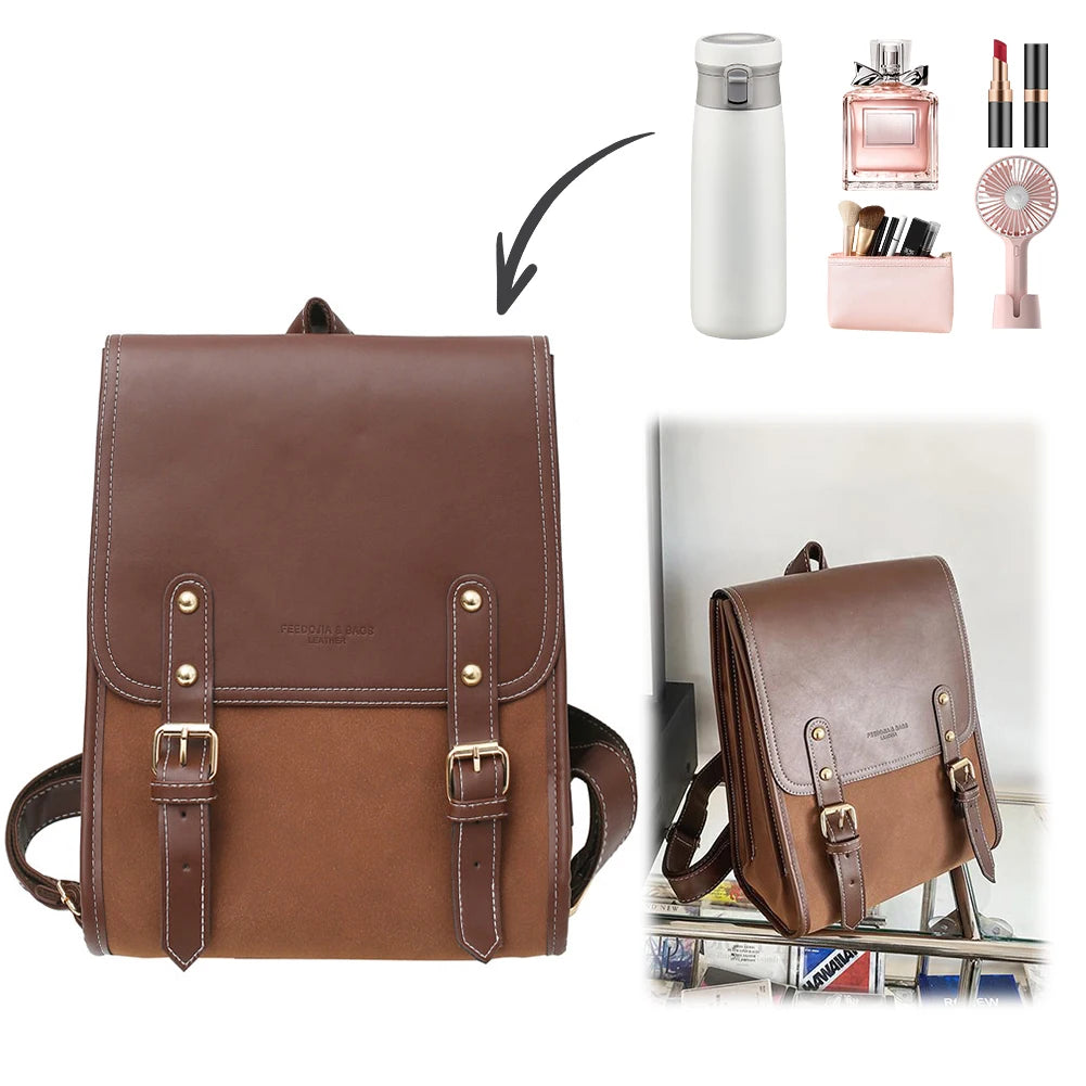 | Japanese Travel Backpacks Large Capacity Women PU Leather Backpack Vintage College Rucksack Bag for Women Fashion Ladies Casual College Features: 1.Premium PU Leather: Made from high-quality PU leather, this women pu leather backpack offers a soft and comfortable touch, durability, and is easy to maintain. It's for daily use. 2.Spacious Interior: Easily accommodates your books, umbrella, phone, laptop backpack, and power bank. This travel backpacks is ideal for students and professionals alike. 3.Convenient Storage: Features multiple pocket storage, making it easy to carry your essentials. The school bag design ensures everything has its place. 4.Versatile Design: Dual-tone adjustable shoulder straps allow it to be used as a shoulder bag, handbag, or vintage college rucksack bag, effortlessly matching your various styles. 5. for Any Occasion: A great choice for shopping, holiday parties, traveling, or street photography. It also makes an excellent gift for moms, girlfriends, wives, and children. Specification: Origin: Mainland China Main material: PU Lining material: Polyester Color: Black, Brown Closing method: Zipper Shape: Square Type: Double pack Size: 320*260*140mm Note: |