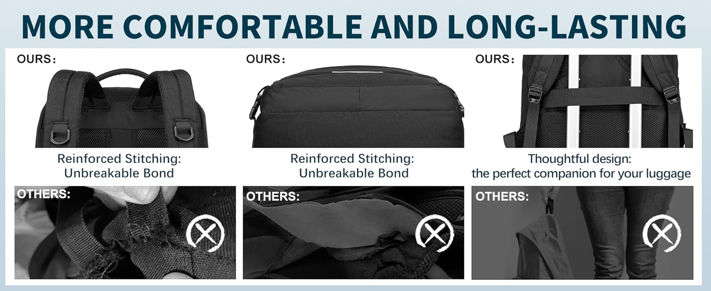 【Comfortable & Long-lasting Backpack】The travel cabin backpack is made from waterproof and tough polyester fiber fabric. The shoulder straps and back panel use breathable mesh material, providing both comfort and ventilation for heat dissipation. The side compression straps offer maximum compression to prevent items from shifting.