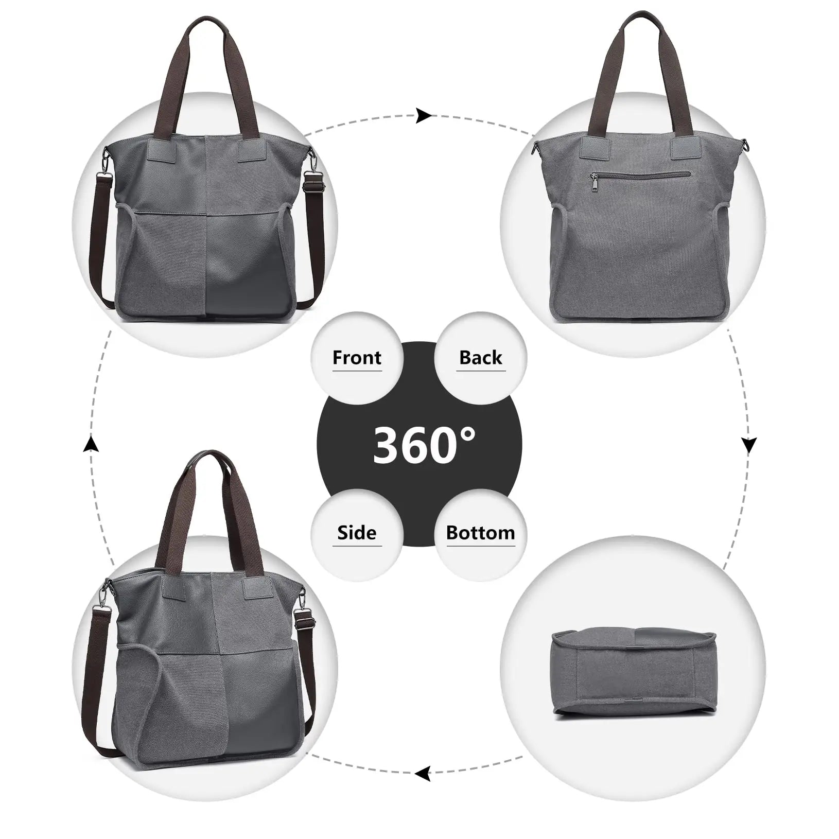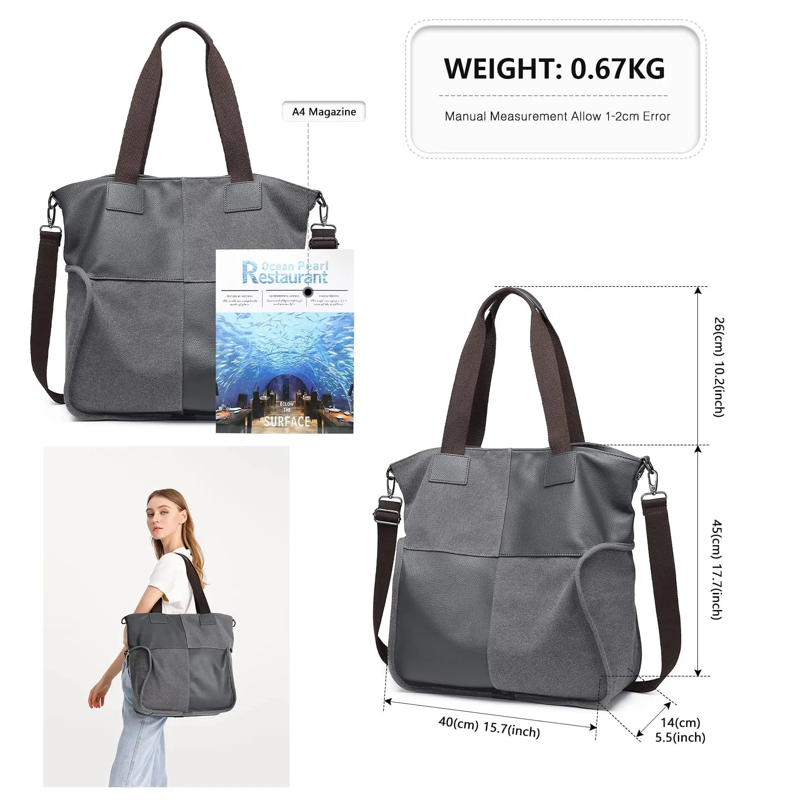 Special twin top handles made of canvas and faux leather on top make our shoulder bag more stylish and fashionable. With the top handles, you can carry it as a handbag and tote.