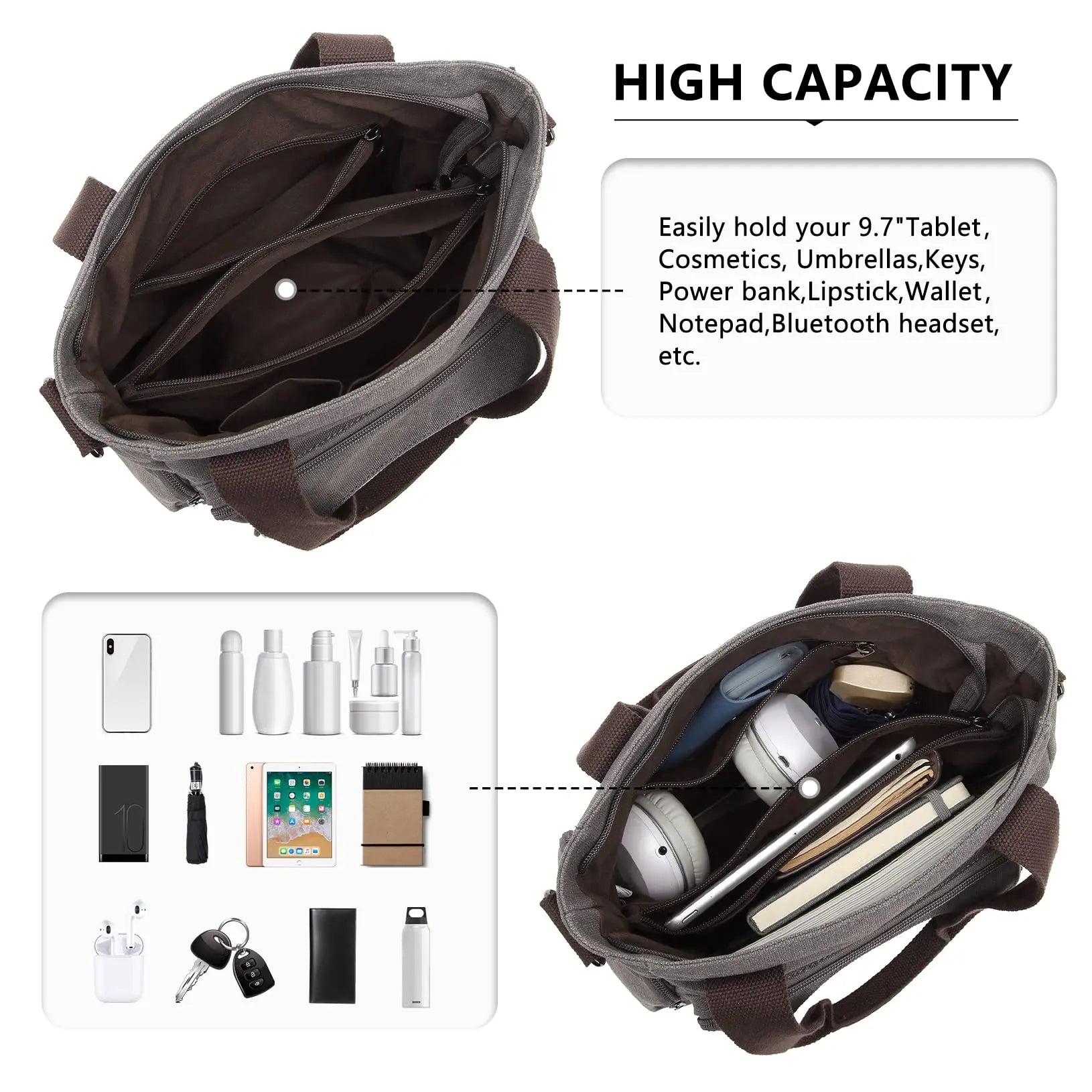 big compartment with 2 zipper pocket inside are ideal for your daily use or outdoor travelling, which can organise all your things tidy and clean.